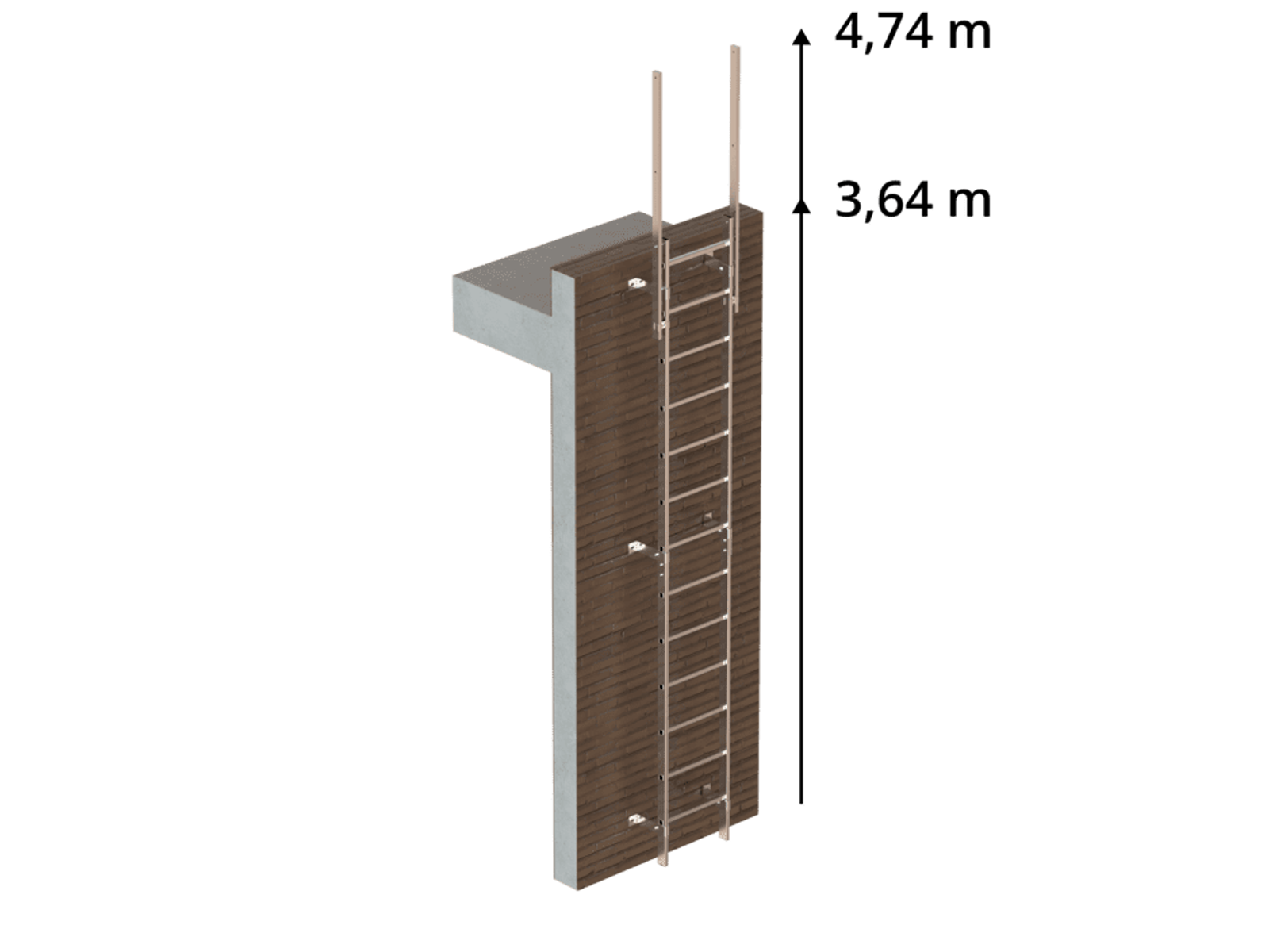 Lejder/vægstige m. rygbøjle 3,64 m | Rustfrit stål A4