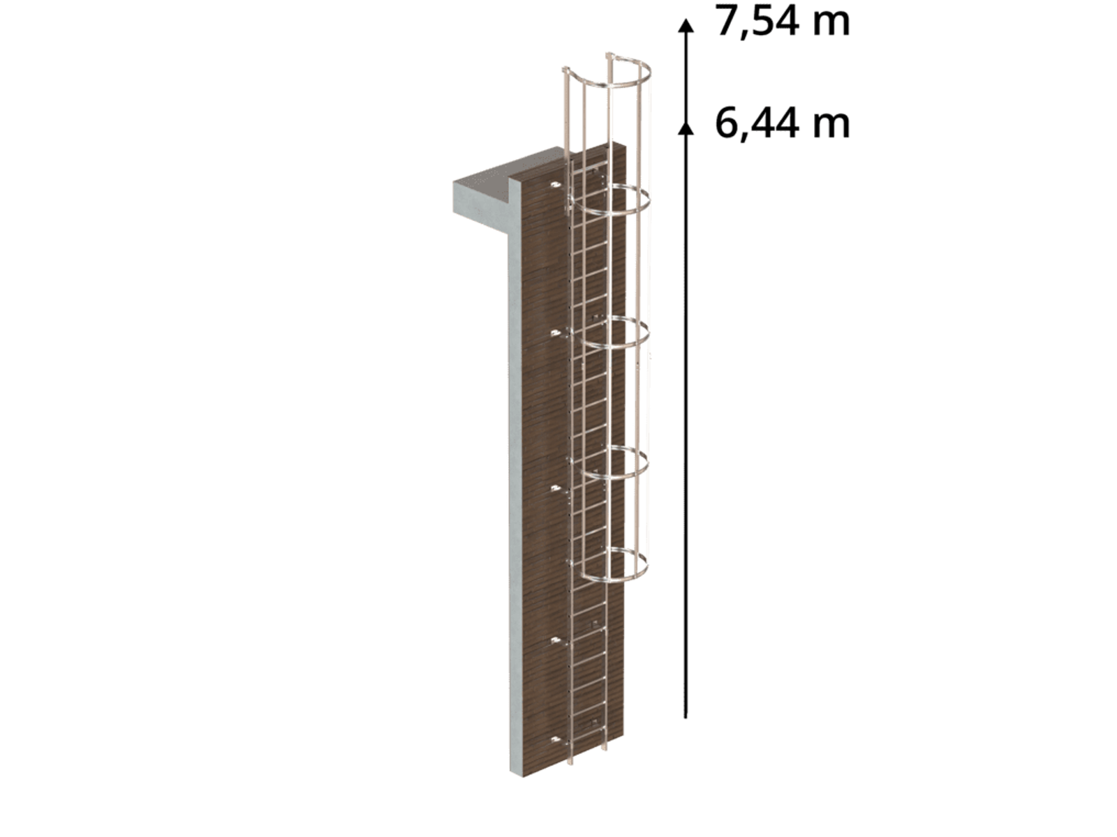 Lejder/vægstige u. rygbøjle 6,44 m | Rustfrit stål A4