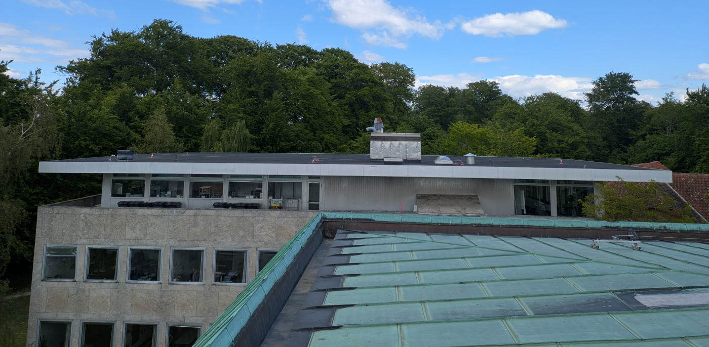 2. Tætning med integreret tagpap: For at bevare bygningens tæthed er taget sikret med to lag integreret tagpap. Dette forhindrer indtrængning af vand og giver en holdbar løsning, selv med de nødvendige fastgørelser.