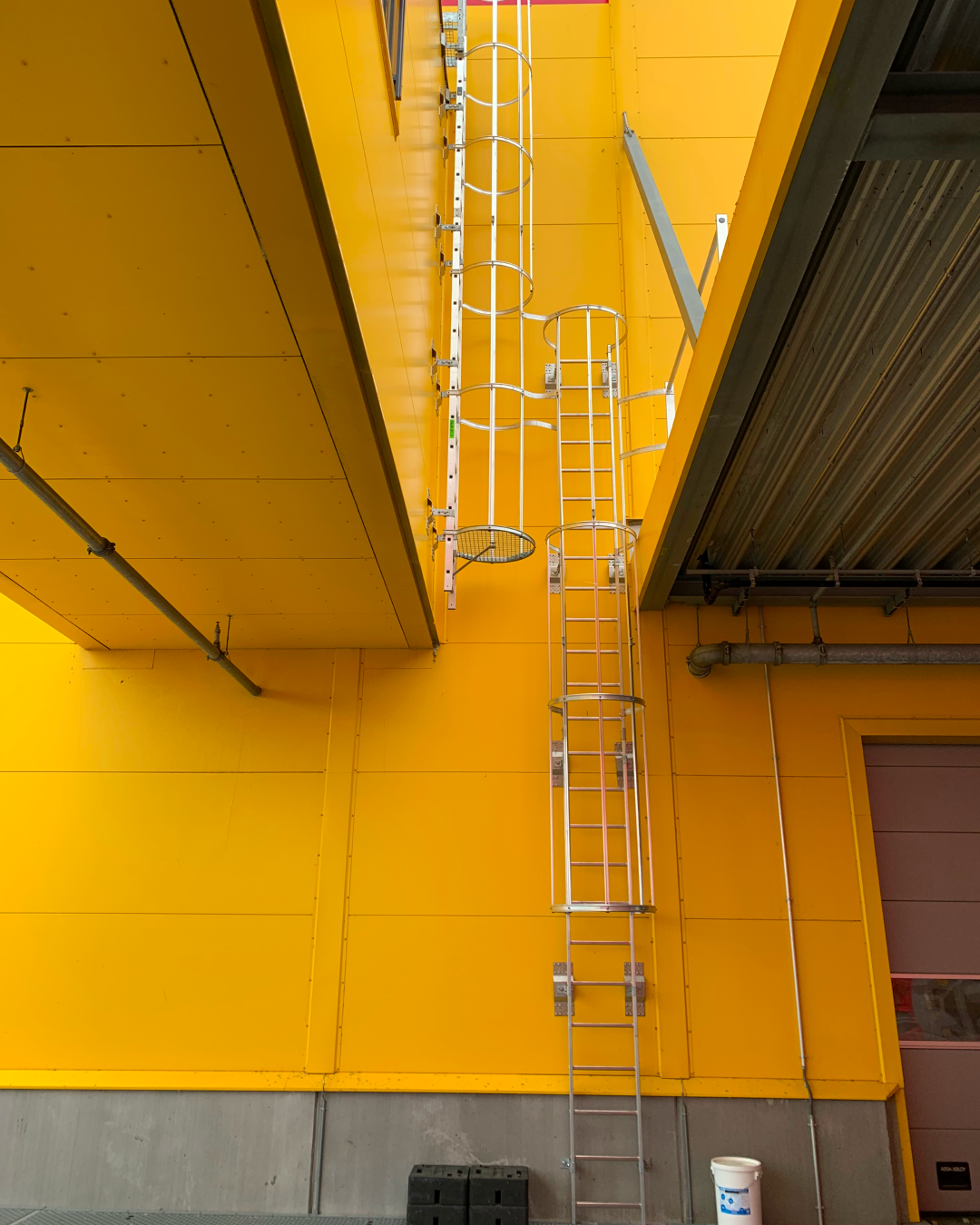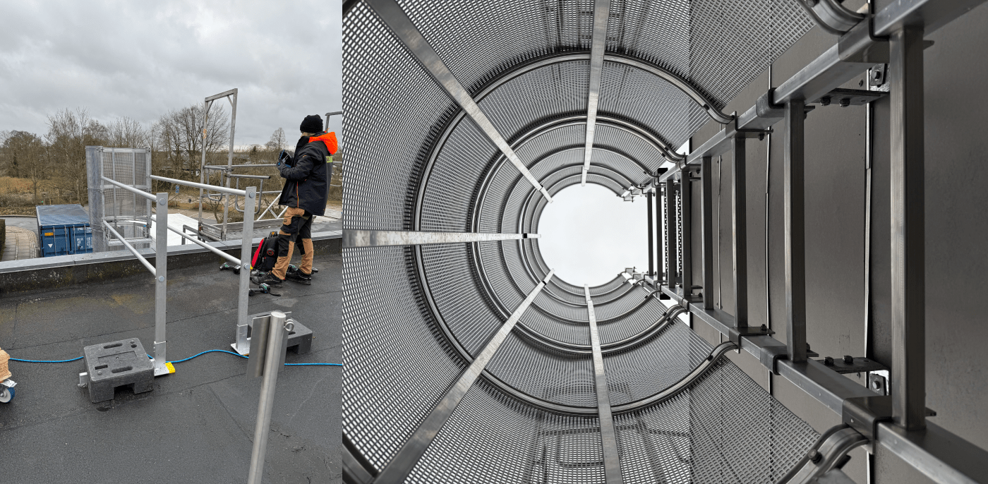 Løsningen er udformet som en lejder, der er monteret på indersiden af bygningen i forbindelse med ovenlysvinduet. På grund af stedets udformning er lejderen udstyret med teleskopiske gelændere, der trækkes op, når brugeren når toppen af stigen.