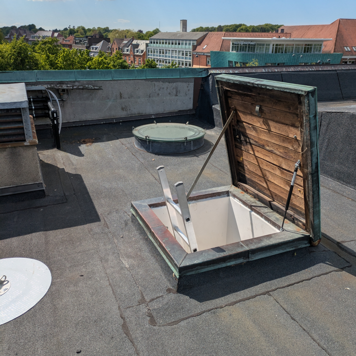 Der er etableret en specialtilpasset faldsikringsløsning, som giver driftspersonalet tryg adgang til taget via ovenlys. Løsningen er udført med respekt for bygningens fredningsstatus og sikrer fuld bevægelsesfrihed uden at gå på kompromis med tagets konstruktion.