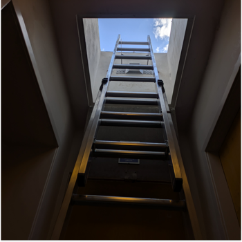 1. Adgang gennem ovenlys: Der er etableret adgangsvej gennem smalt ovenlys