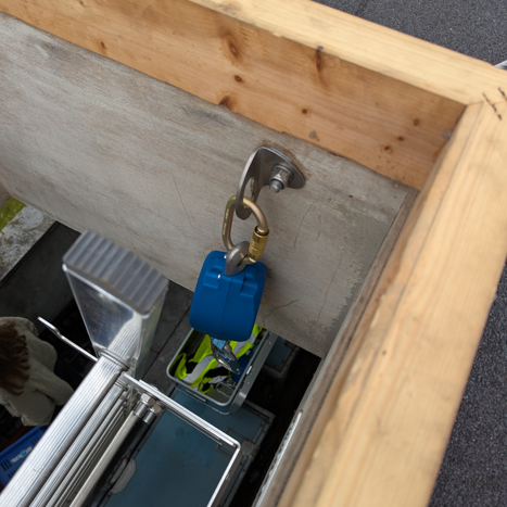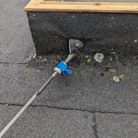 2. Lanyard konnektet til ankerpunkt på tag: Ankepunktet er forbundet til faldsikringen på taget via lanyard