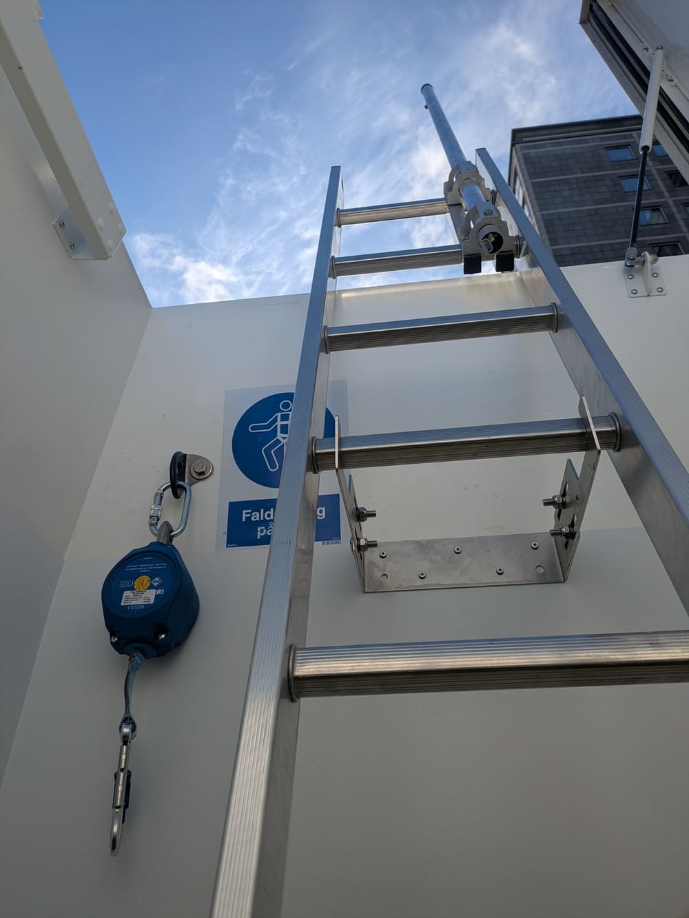 3. Adgangsvej fra ovenlys til faldsikrin: Adgangsvejen fra ovenlyset er forbundet med faldsikrigen på taget så brugeren er sikret hele vejen