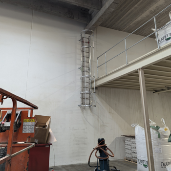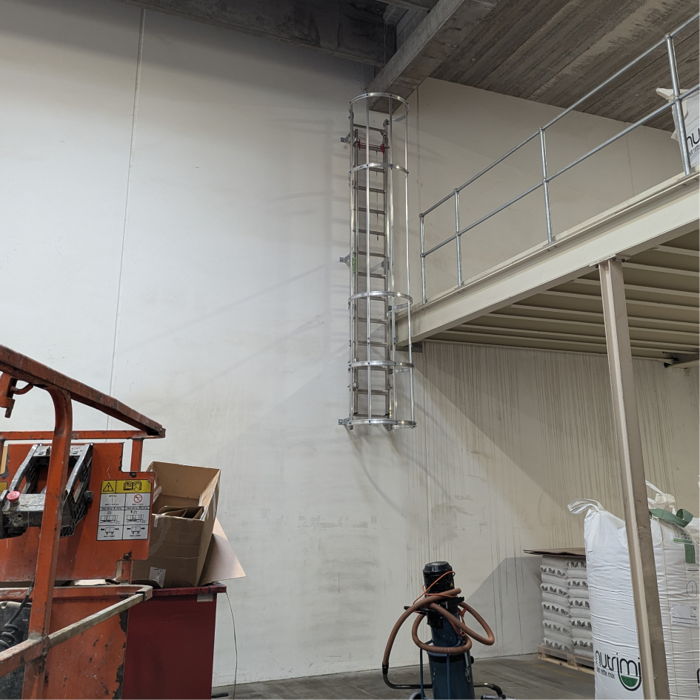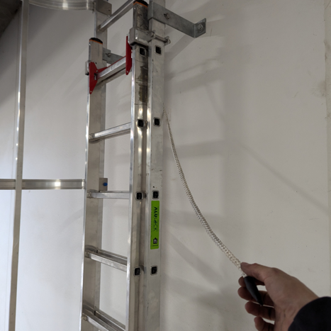 Der er etableret en nødlejder, der fungerer som flugtvej fra Nutrimin’s repos i tilfælde af ulykke. Lejderen er monteret direkte på væggen og udstyret med en nødstige, som aktiveres ved at trække i et reb. Når rebet udløses, glider stigen automatisk ned og giver personalet mulighed for at evakuere hurtigt og sikkert.