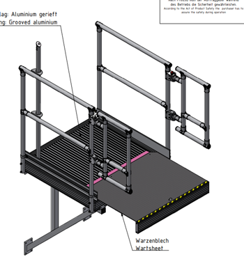 3. Platform med teleboard og dør: Ved eksisternede dør er der etableret en adgangsplatform. Den er udstyret med et udskydeligt teleboard og en integreret dør, der giver nem og sikker adgang til arbejdsområdet. Dette gør det muligt for personalet at komme tæt på bussen uden risiko for fald eller usikre passager ved overgang.