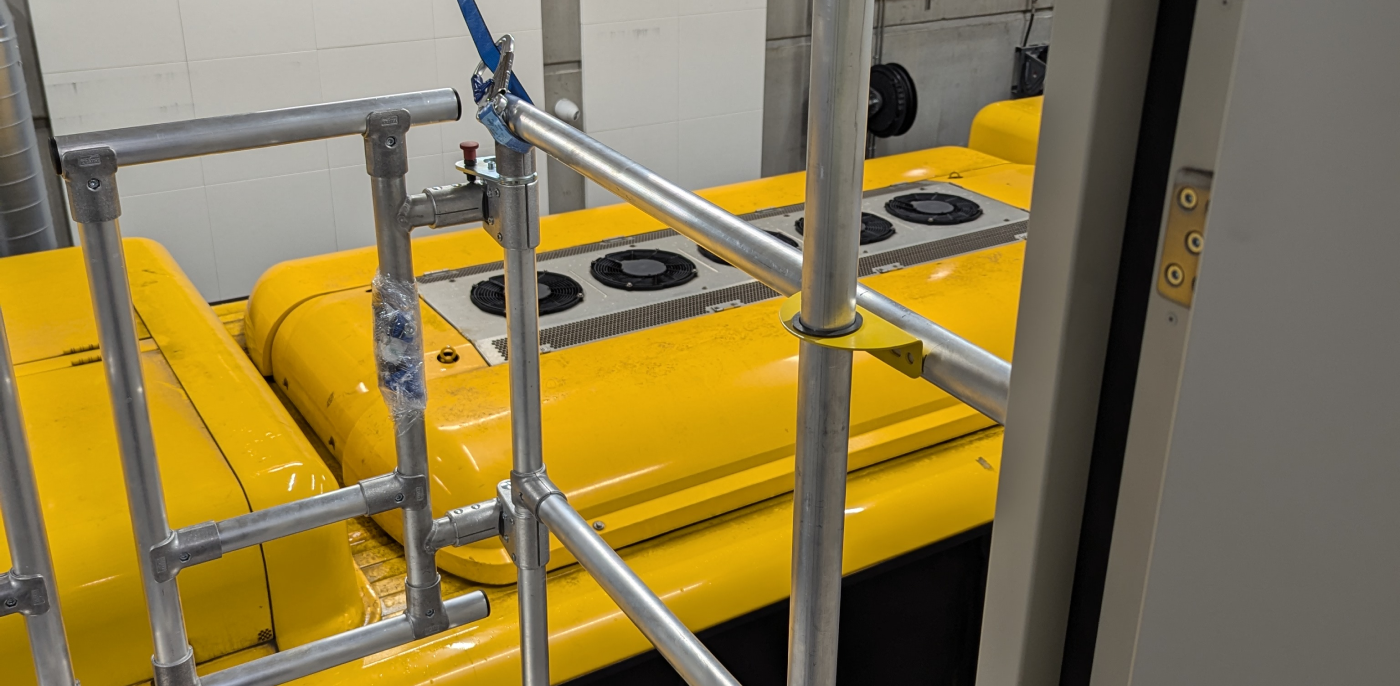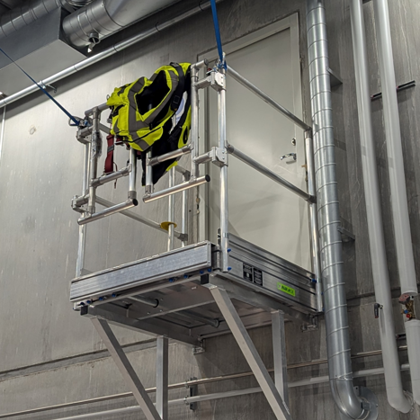 Der er etableret en 14 meter lang overhead faldsikring, som gør det muligt for to driftsfolk at arbejde samtidigt på busserne. Systemet består af ankerpunkter monteret i loftet, hvor hver enhed er fastgjort med fire betonskruer, hvilket giver en stærk og sikker forankring. Faldblokke sikrer, at driftspersonalet altid er sikret under arbejdet.