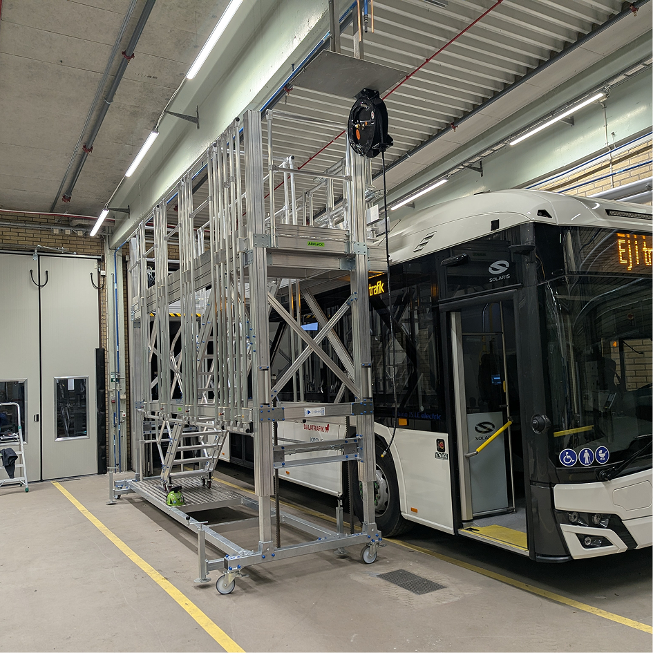 - Mulighed for samtidig arbejde på to busser via gelænder på begge sider.